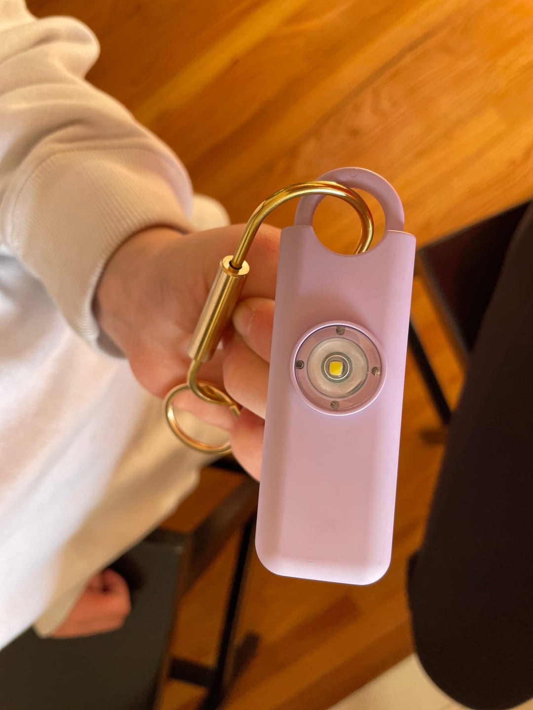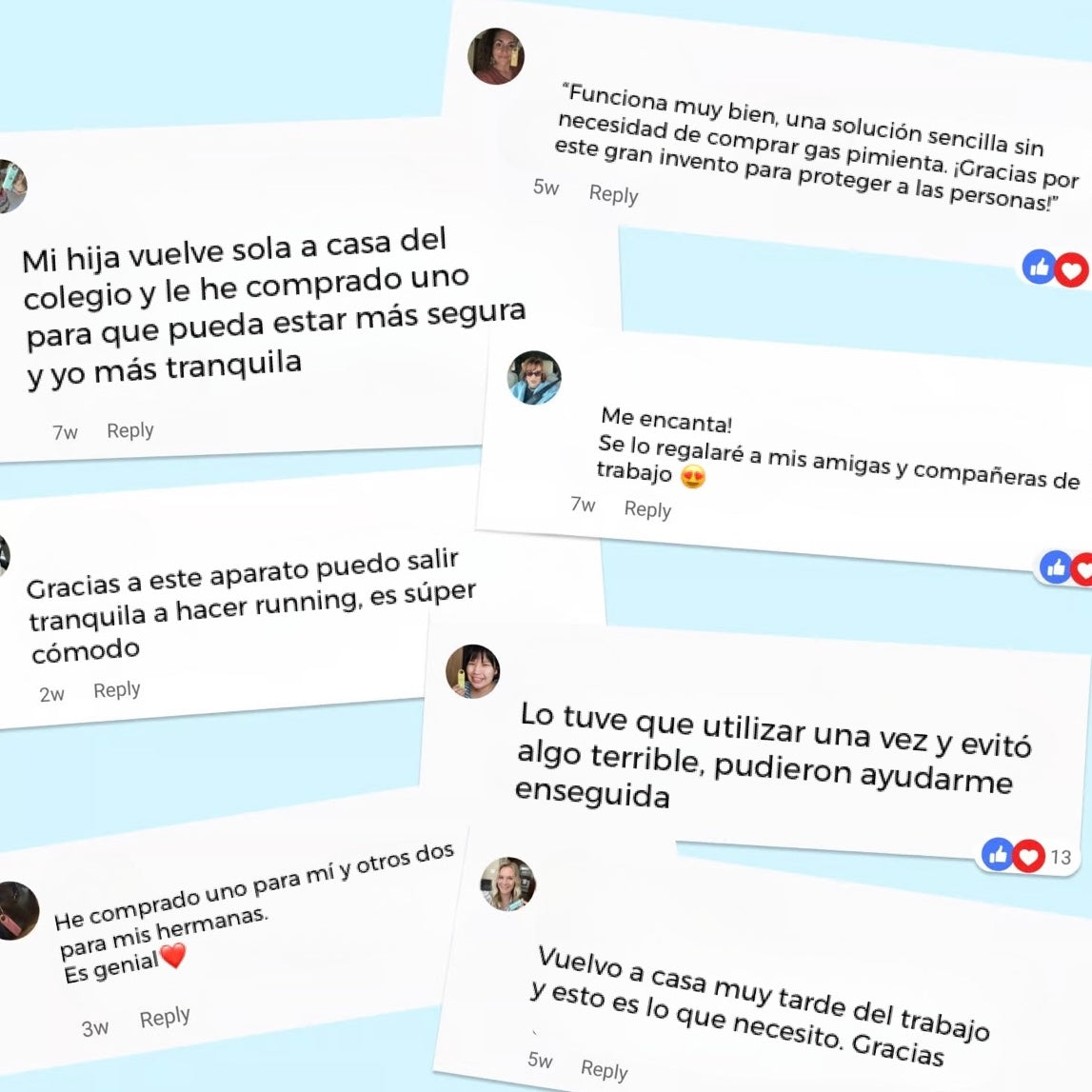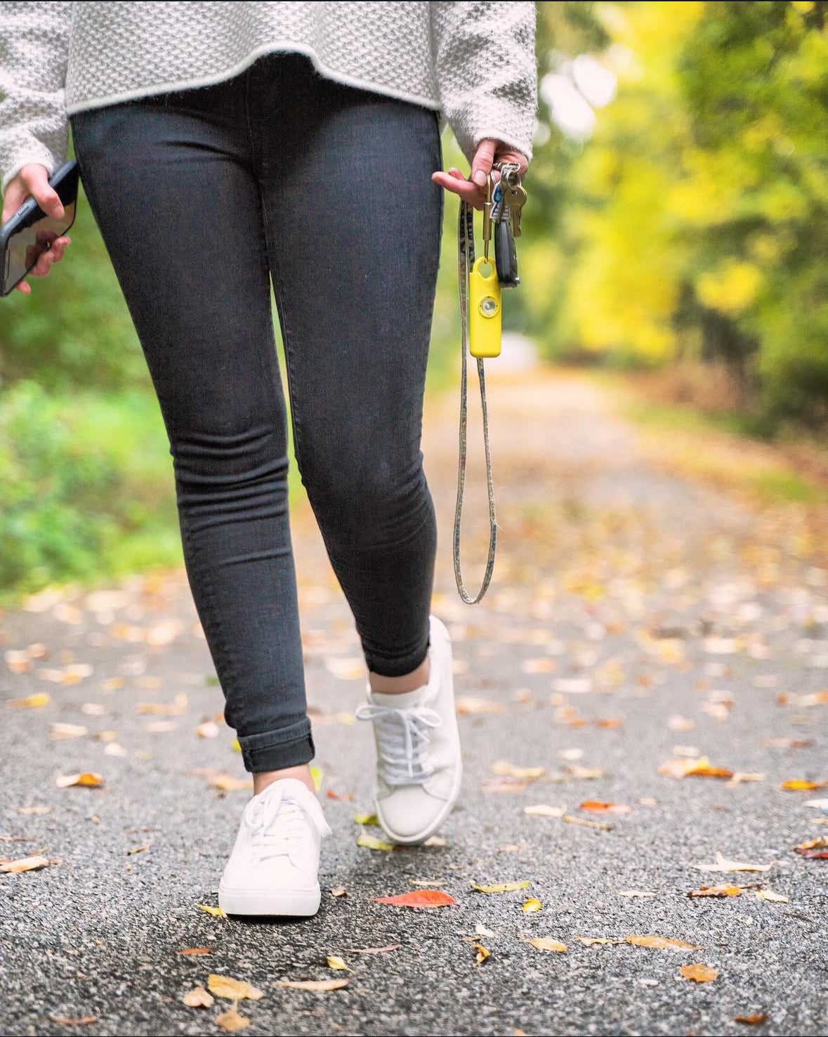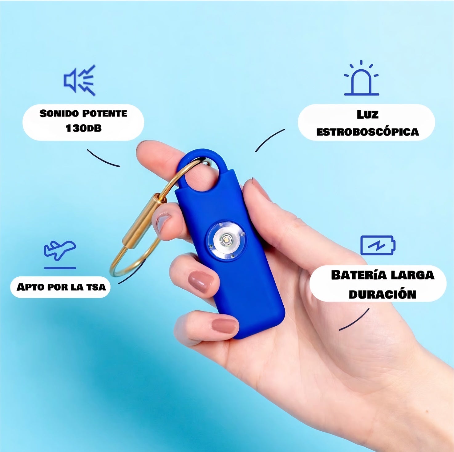 ¿Te sientes incómoda? Confía en tu instinto. Tira de la parte superior para activar la potente sirena y la luz estroboscópica: todos voltearán a mirarte.